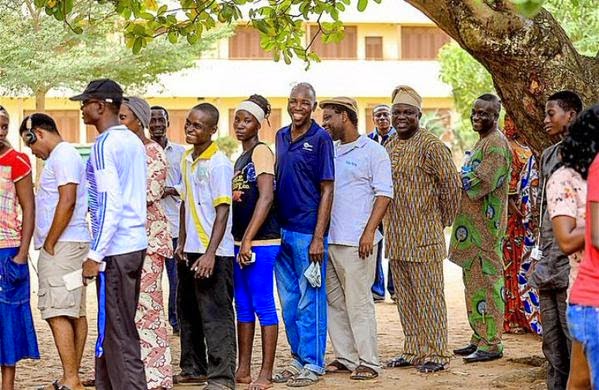 Governor Fashola and wife on queue to get accredited - 2015 Election Report